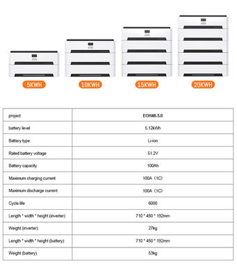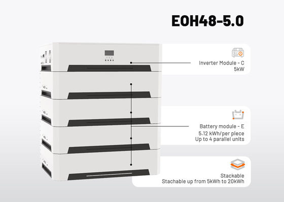 Ce système est équipé d'un onduleur sinusoïdal pur de 5 kW avec un régulateur de charge solaire MPPT hautement efficace intégré, combiné à des batteries LiFePO4 à très longue durée de vie (5,12 KWh par paquet).Le système prend en charge l'empilement jusqu'à 4 batteries pour atteindre une capacité totale de batterie de 20 KWh, fournissant une alimentation électrique stable pour toute votre maison.