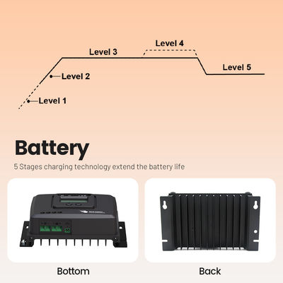 Le contrôleur est livré avec un écran LCD qui fournit une surveillance en temps réel du processus de charge. Cet écran affiche des informations essentielles telles que la tension de la batterie, le courant de charge, le stade de charge,et le type de batterie, ce qui permet aux propriétaires de camping-cars de suivre plus facilement le statut de leur batterie.