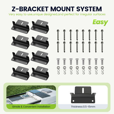 L'une des caractéristiques exceptionnelles de ce système d'alimentation solaire de 400 W est son matériel de montage complet inclus dans l'emballage. Cela signifie que vous disposerez de tous les composants nécessaires pour installer solidement les panneaux solaires sur votre camping-car sans avoir à acheter de pièces supplémentaires. Le matériel est conçu pour résister aux rigueurs des voyages et des conditions extérieures, garantissant que vos panneaux restent fermement fixés et positionnés pour une exposition maximale au soleil.