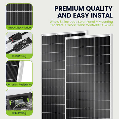 La durabilité est encore renforcée par l'impressionnante classification de résistance à l'eau IP67 du kit pour les panneaux solaires. Cette classification garantit que les panneaux solaires et l'équipement associé sont protégés contre la pénétration de la poussière et peuvent résister à une immersion dans l'eau jusqu'à une certaine profondeur. Cela rend le système d'alimentation solaire de 400 W très fiable dans diverses conditions météorologiques, des fortes pluies aux sentiers poussiéreux, vous permettant de faire confiance à votre système hors réseau, quel que soit l'environnement.