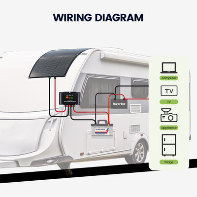 Au cœur de ce kit de recharge solaire se trouve un panneau solaire semi-flexible léger de 120 W à haut rendement, qui est un choix idéal pour les fourgons aménagés et les petites installations de camping-cars. Le type de panneau solaire semi-flexible monocristallin utilisé dans ce kit garantit des taux de conversion d'énergie supérieurs et de meilleures performances dans des conditions de faible luminosité par rapport aux autres technologies de panneaux solaires. Cela signifie que vous obtenez plus d'énergie, même par temps nuageux ou tôt le matin et en fin d'après-midi, ce qui en fait un composant fiable de votre système d'alimentation hors réseau.